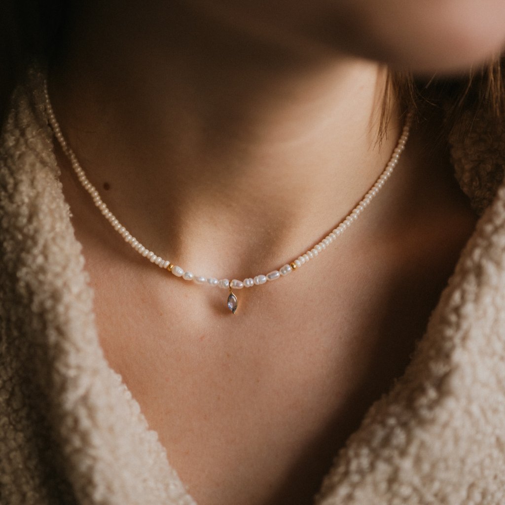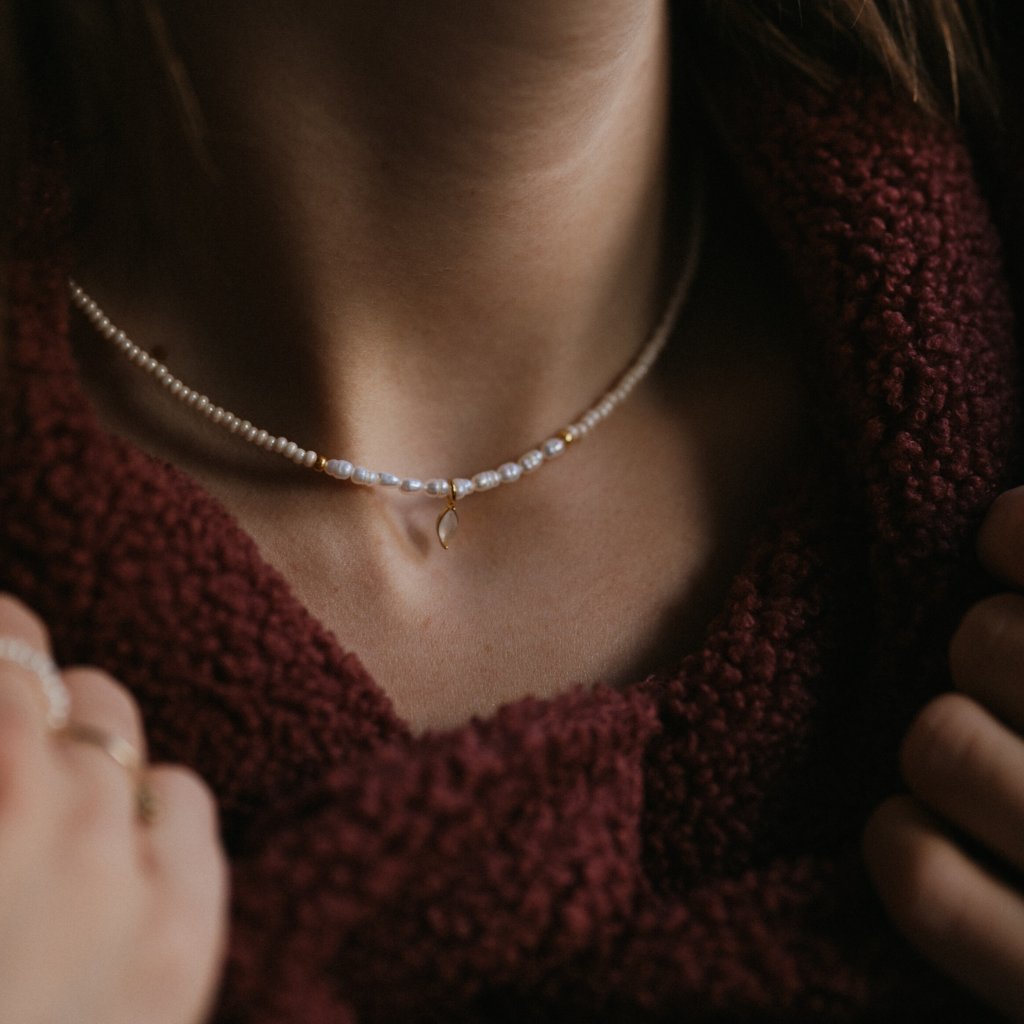 Nit je pevná, ale stejně jako tichá kapka — ocení jemné zacházení a klid od vody. Pro zachování jemnosti doporučujeme nenamáhat, neohýbat a nenosit ve vodě.