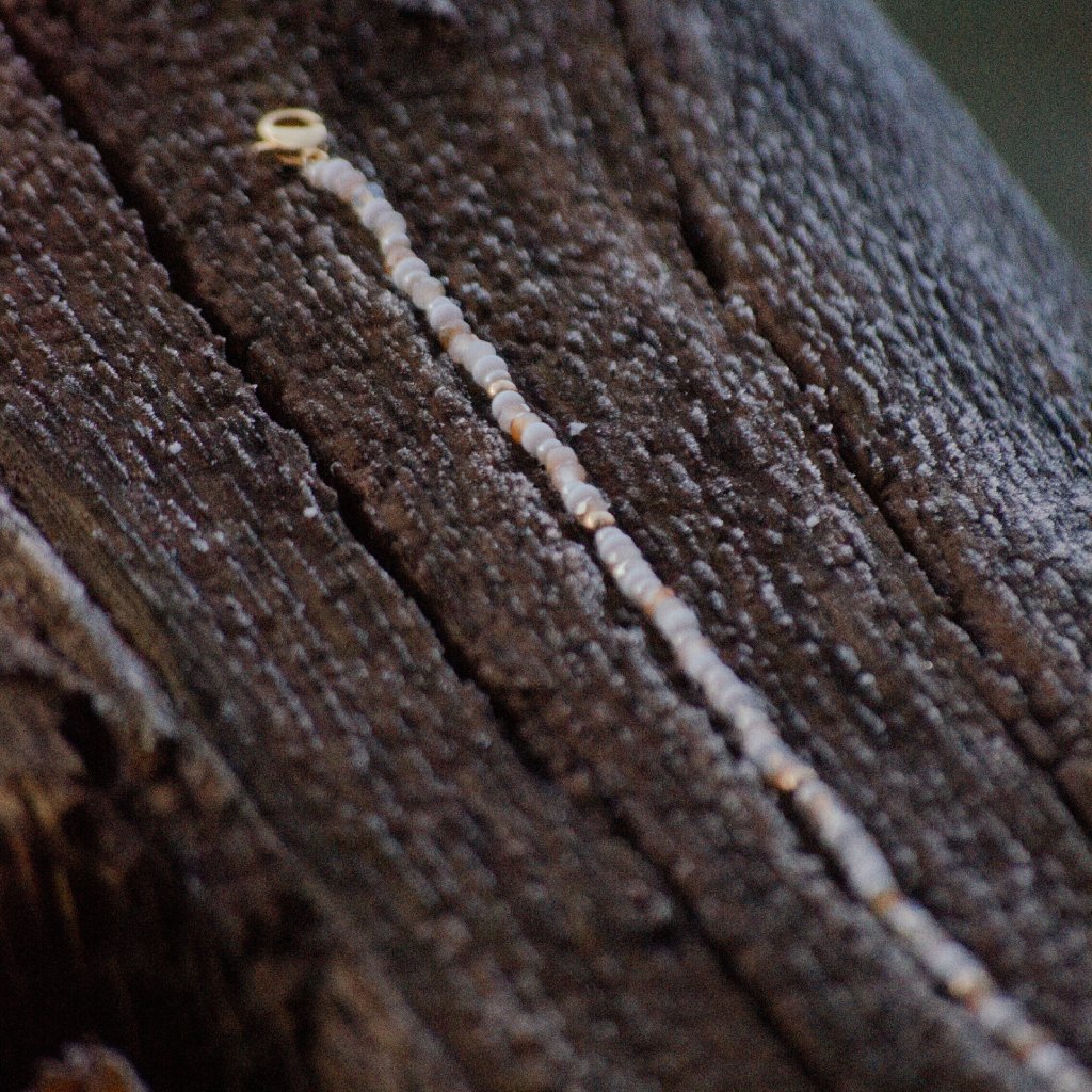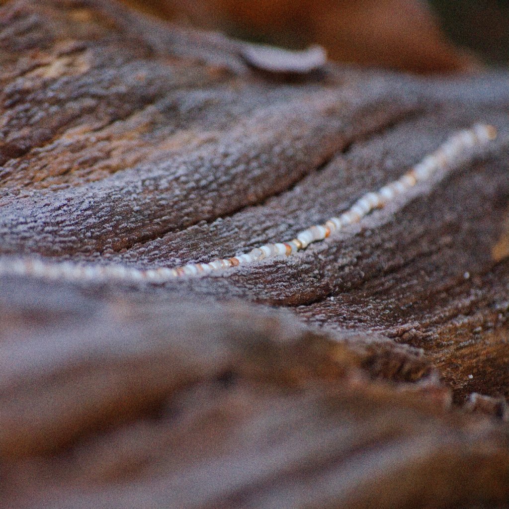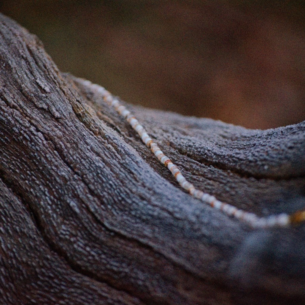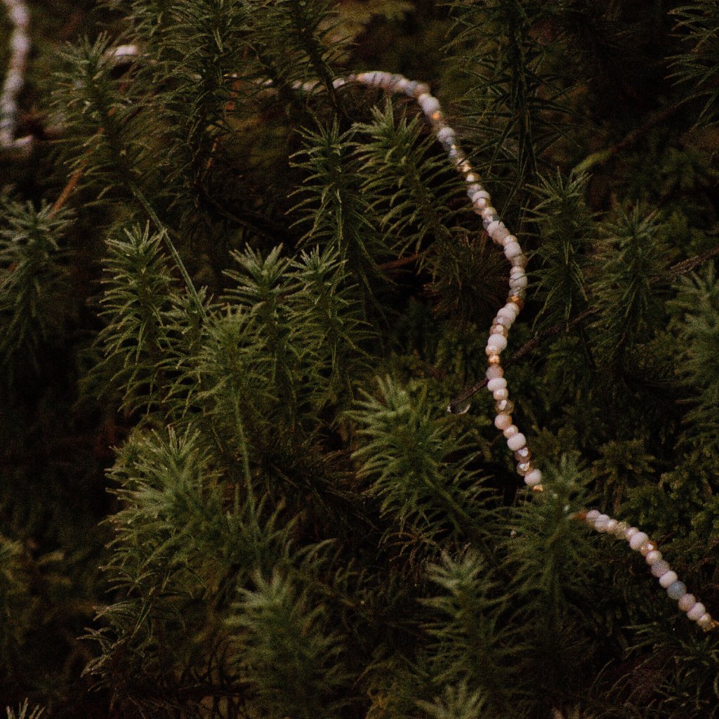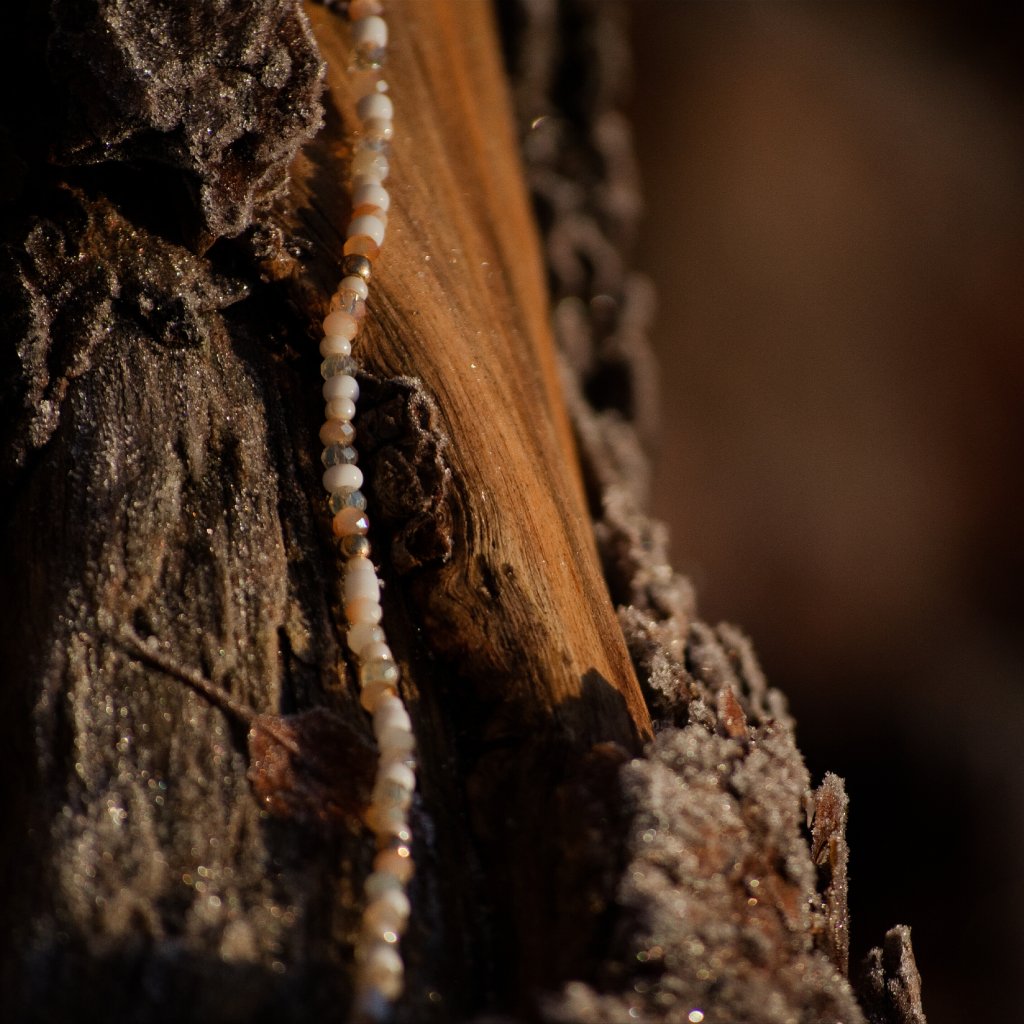 Jemný náhrdelník v odstínech bílé, béžové a jemného třpytu připomíná světlo, které se zachytí na větvích v tichém lese. Neokázalý, čistý a přirozený... určený těm, kdo milují detail, klid a nenápadnou eleganci.