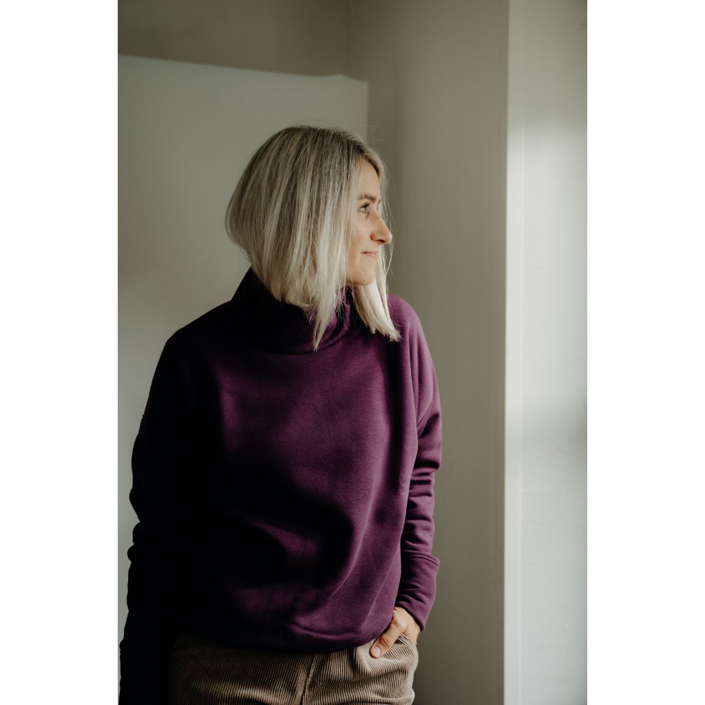 Úplet je pružný, z rubu chloupek, ve složení 70% bavlna, 30% PES.