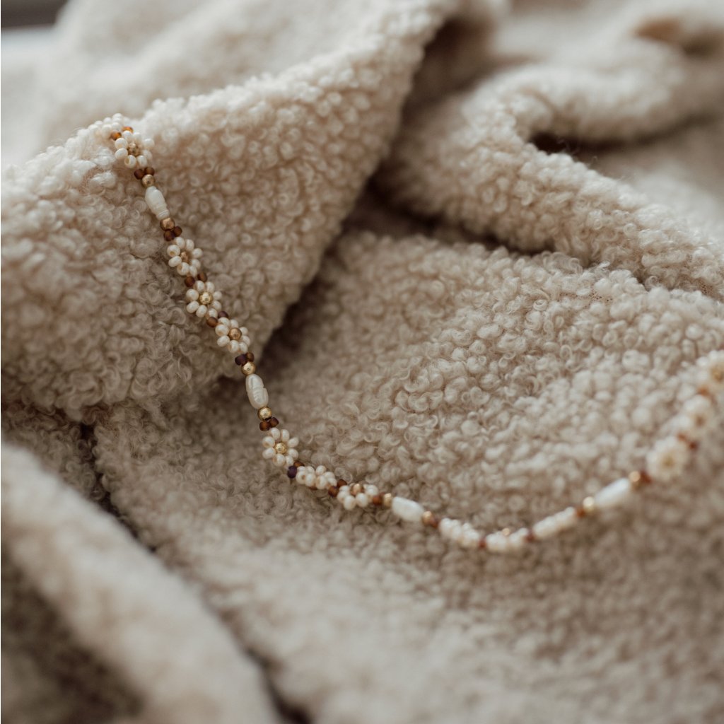 Náhrdelník je něžný, hřejivý a tichý — ale zároveň hluboký, stejně jako ženská síla, kterou ztělesňuje.