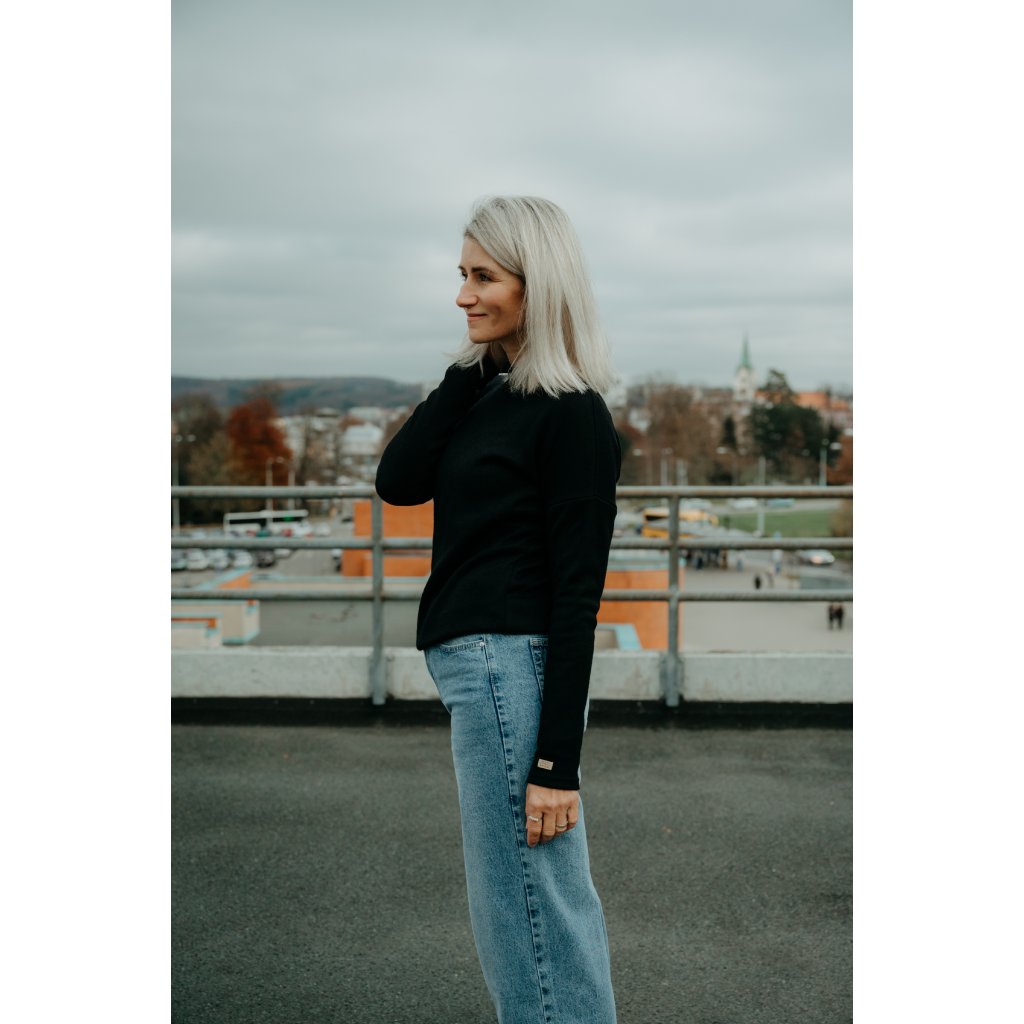 Má stojáčkový výstřih, který působí elegantně. Na rukávu najdeš malé logo Below - jen taková mrknutí pro ty, kdo ví.